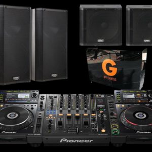 “Full DJ Setup Package 2 / Ultimate Rental Package – 2x CDJ-2000nxs + 1x DJM-900nxs + 1x DJ booth + 2x K12 + 2x KW181 + All Cabling”